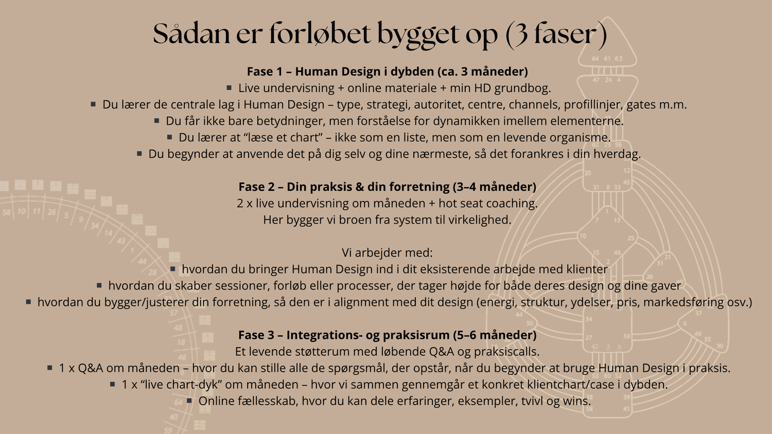 Et levende uddannelses- og praksisrum, hvor du lærer at integrere Human Design i dit arbejde med mennesker – og i dit eget liv.